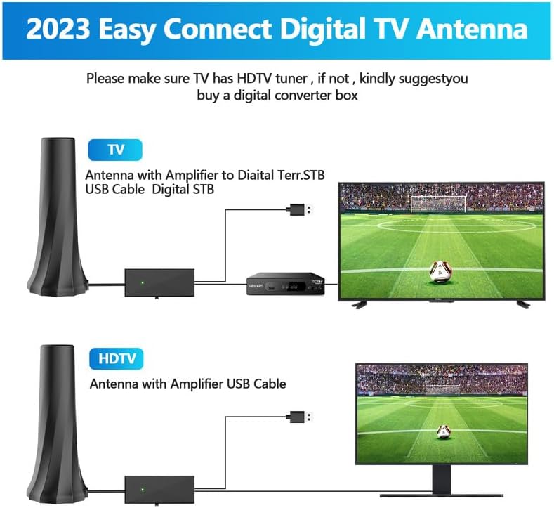 Easy to Install - You can place the smart tv antenna behind your TV or in front of a window, and we make sure that you can complete the installation within a few minutes. With the WU-MINGLU HDTV antenna, you can enjoy plenty of channels in your living room, bedroom, basement, RV, and more.If your TV has multiple built-in tuners, simply plug one end of each coaxial cable into each TV terminal on your antenna and the other end into each corresponding coaxial input on your TV's USB port.