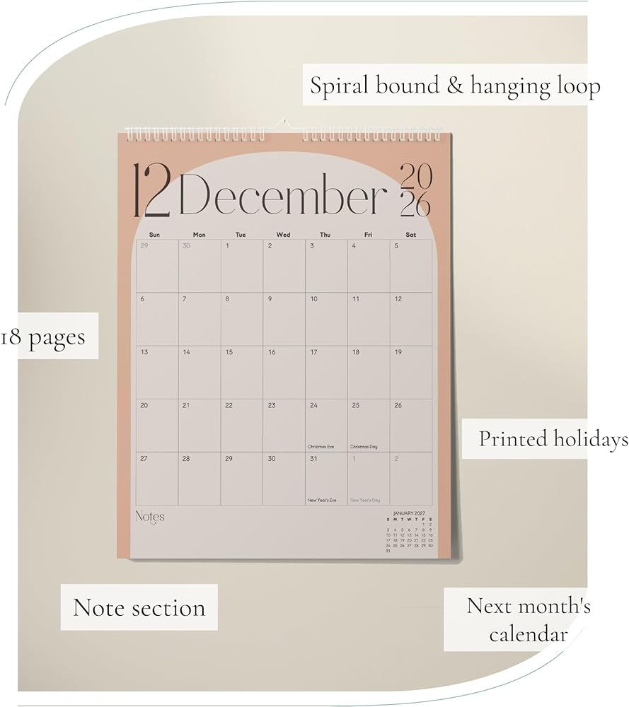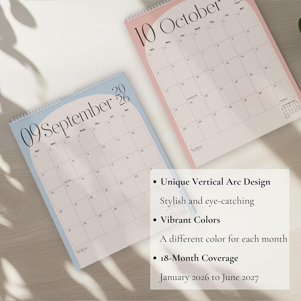 Wall Calendar 2026-2027 Hanging Calendar - Jan 2026 to Jun 2027, 13.5 x 11 Inches 18 Months Spiral Twin-Wire Binding Calendar Planner, Large Writing Blocks with Holidays
