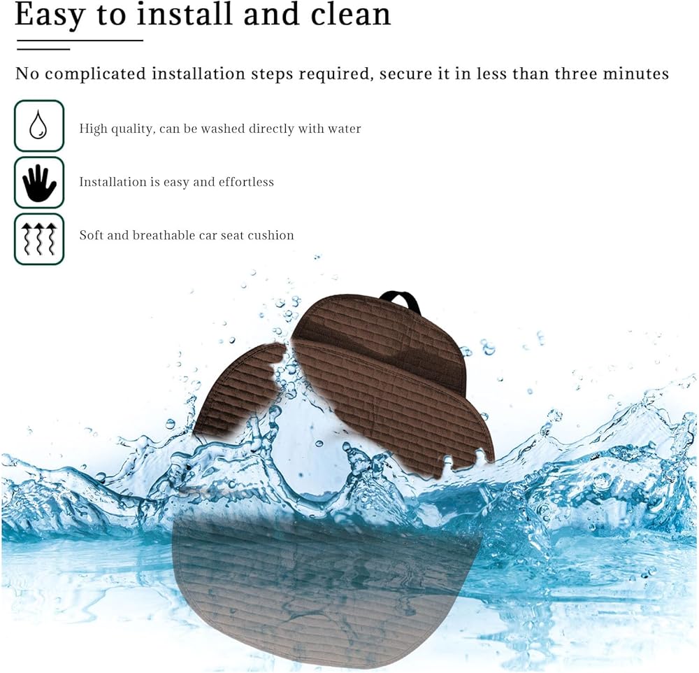 【Easy to Use】: This car seat cushion is suitable for most vehicle car seats. Just fix the buckle and strap on the seat, and it will not affect the use of the original car safety buckle. When the seat protector becomes dirty, it can be machine washed without deformation, making it easy to clean.
