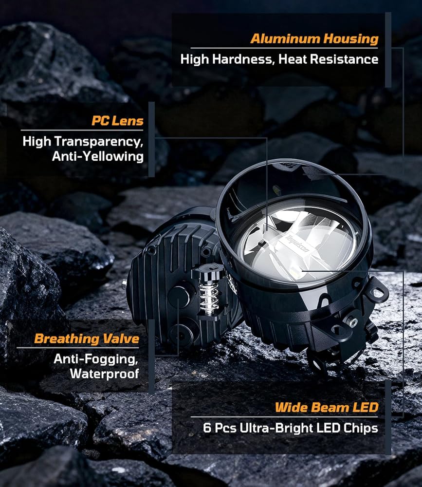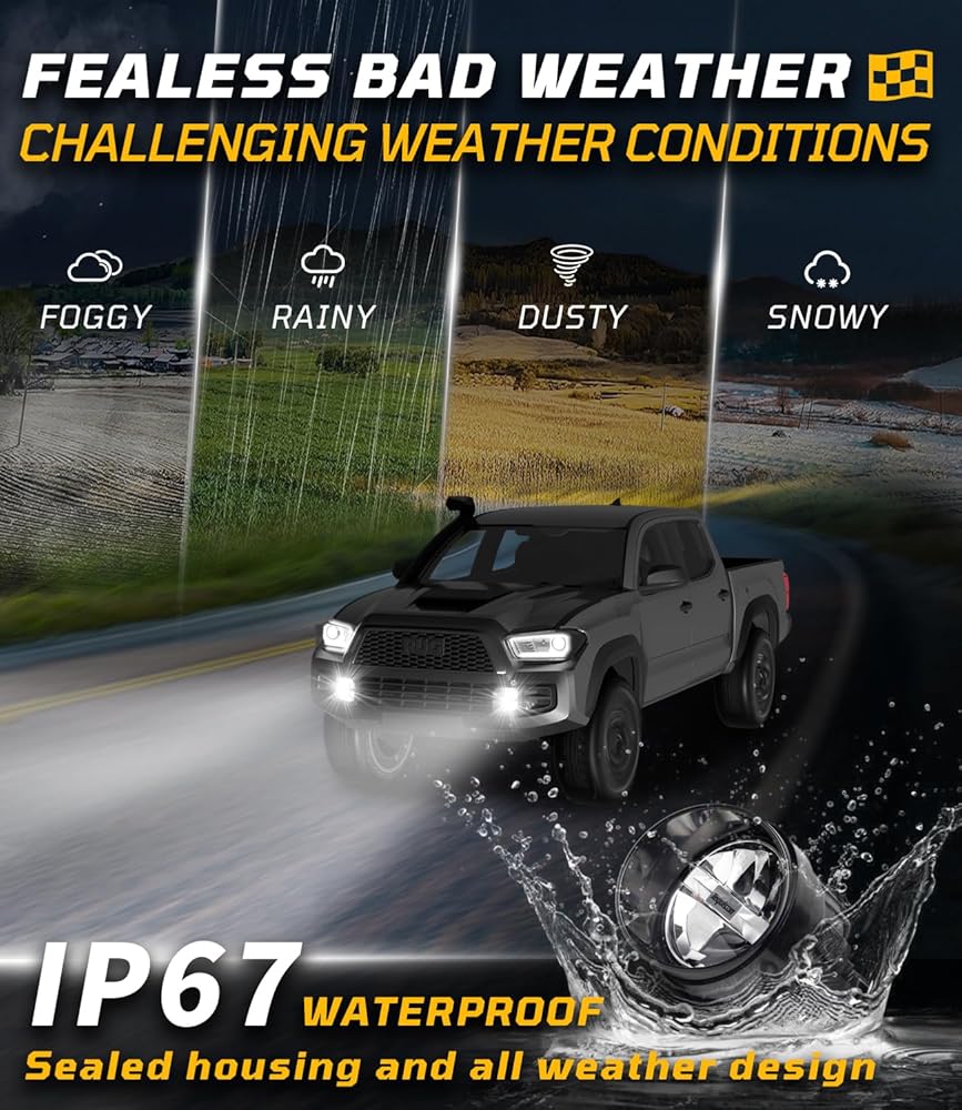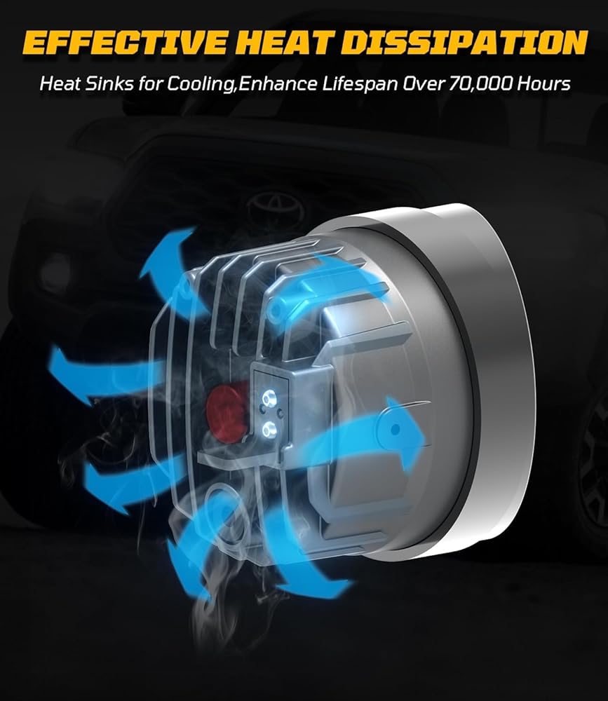 【Outstanding Heat Dissipation & Long Service Life】The fog lights led assembly is made of military grade heat dissipation excellent die-cast aluminum alloy housing and advanced heat dissipation system to ensure that the light bulb works in a stable temperature range.IP67 waterproof rating, very durable to prevent potential damages and withstand any extreme weather conditions. Helps maximize its service life of over 70,000 hours.