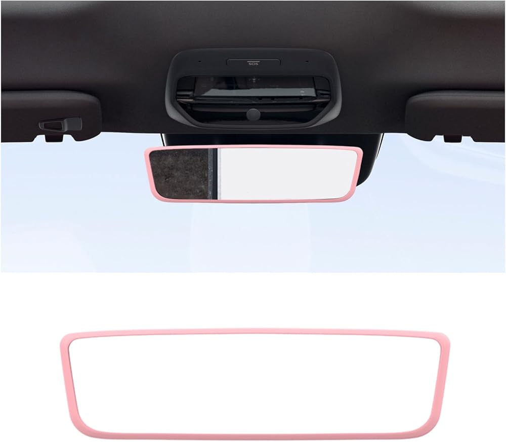 Car Rear View Mirror Protector Frame, Silicone Auto Rearview Mirror Edge Protective Cover Compatible with Model 3 Y, Car Interior Rearview Mirror Decor Accessories (Pink)