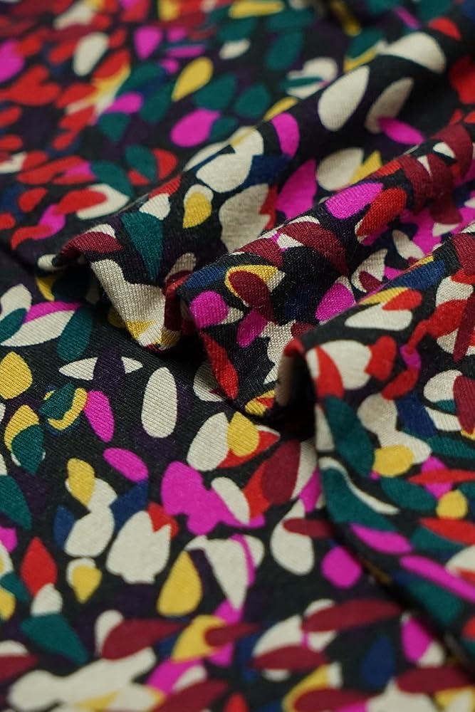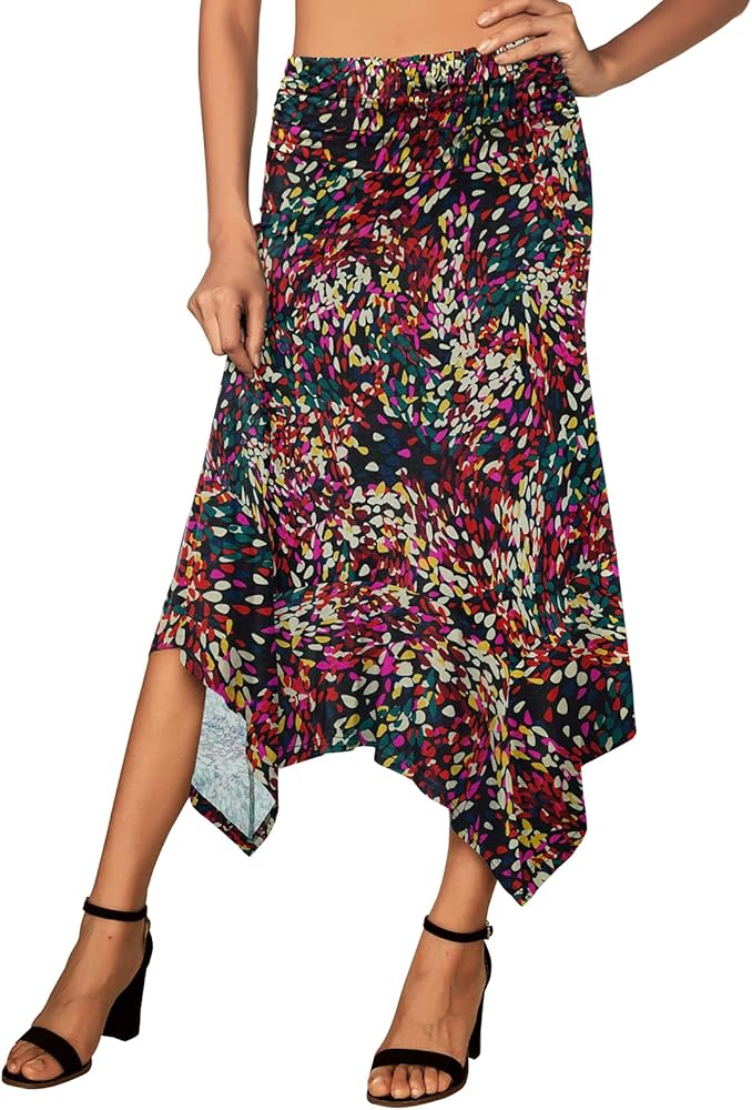 DJT Women's Ruched Elastic Waist Soft Flowy Handkerchief Hem Midi Swing Skirt M Paint Palette
