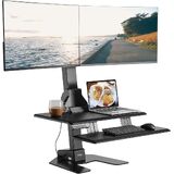AVLT Electric Standing Desk Converter for Triple 32" Monitors, Motorized Sit to Stand Riser with 28"x16" Tabletop, Large Keyboard Tray, Height Adjustable, Sturdy Base, Small Footprint