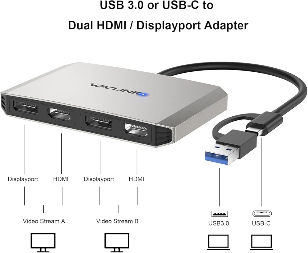 WAVLINK USB C and USB3.0 to Dual 4K DisplayPort & HDMI Adapter, Displaylink Dual 4K@60Hz Monitor Hub, Compatible with M1/M2/M3 MacBook, HP, Dell, Lenovo,Surface