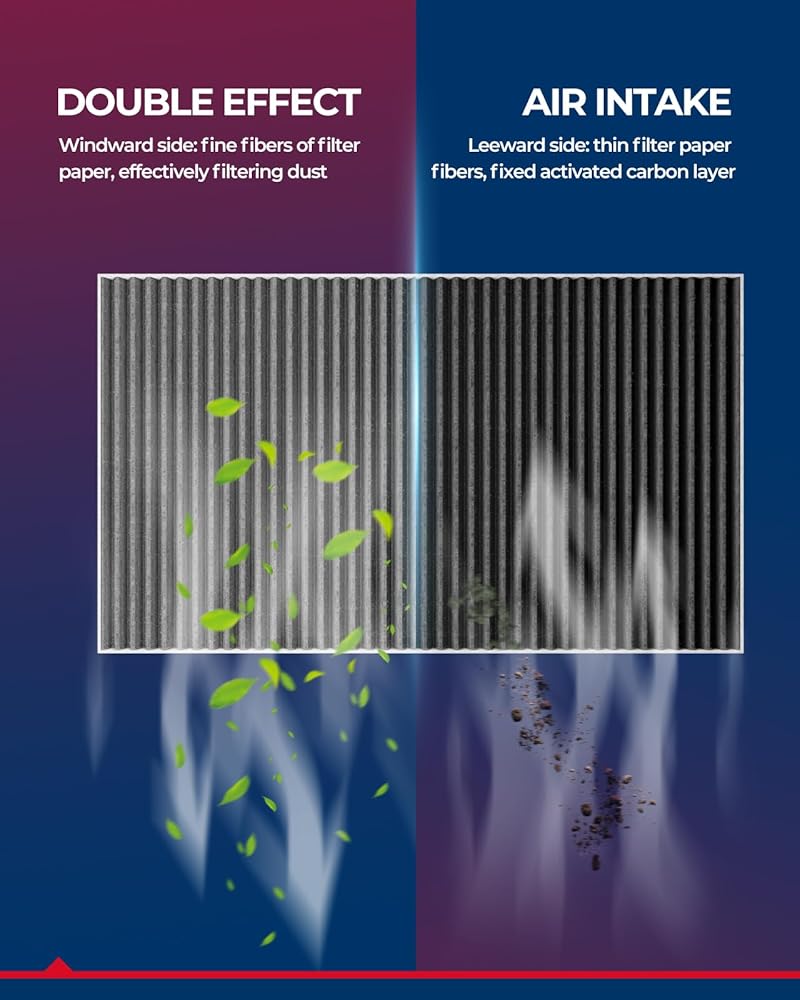 [99% Purification Rate] KAX cabin air filter is made of long-fiber electrostatic cotton, activated carbon, and chemical fabric, which can effectively absorb pollen, dust, soot,and other small particles