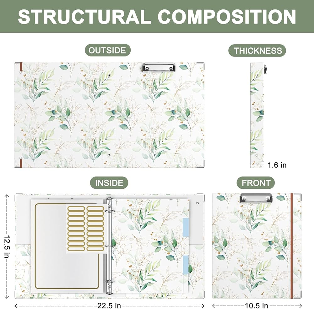 【Standard Size A4 Binder】Expanded size: 22.5 x 12.4 inches, folded size: 12.4*10.4*1.6 inches. This 3 ring binder fits 8.5 x 11 inch letter size paper and can hold up to 100 sheets of clear plastic binder sleeves. Designed for everyday use and organizing projects, can be used for a variety of needs- art portfolio, planner binder, sermon notes, wedding binder, business presentation folder and more.