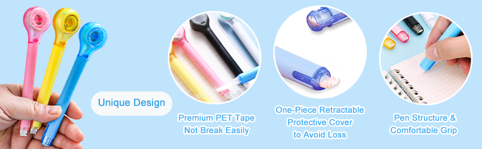 💙【Smooth & Constant】--Correction tape cute is made of high quality PET plastic film tape, which does not break easily and fits closely to the paper for smooth writing.