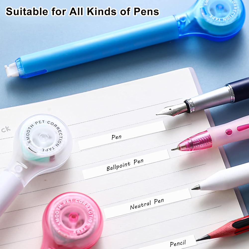 ❤【Quicker Corrections】--Unlike traditional liquid correction tapes, our pen-style correction tape allows you to correct errors immediately without waiting, saving time and improving your work and study efficiency.