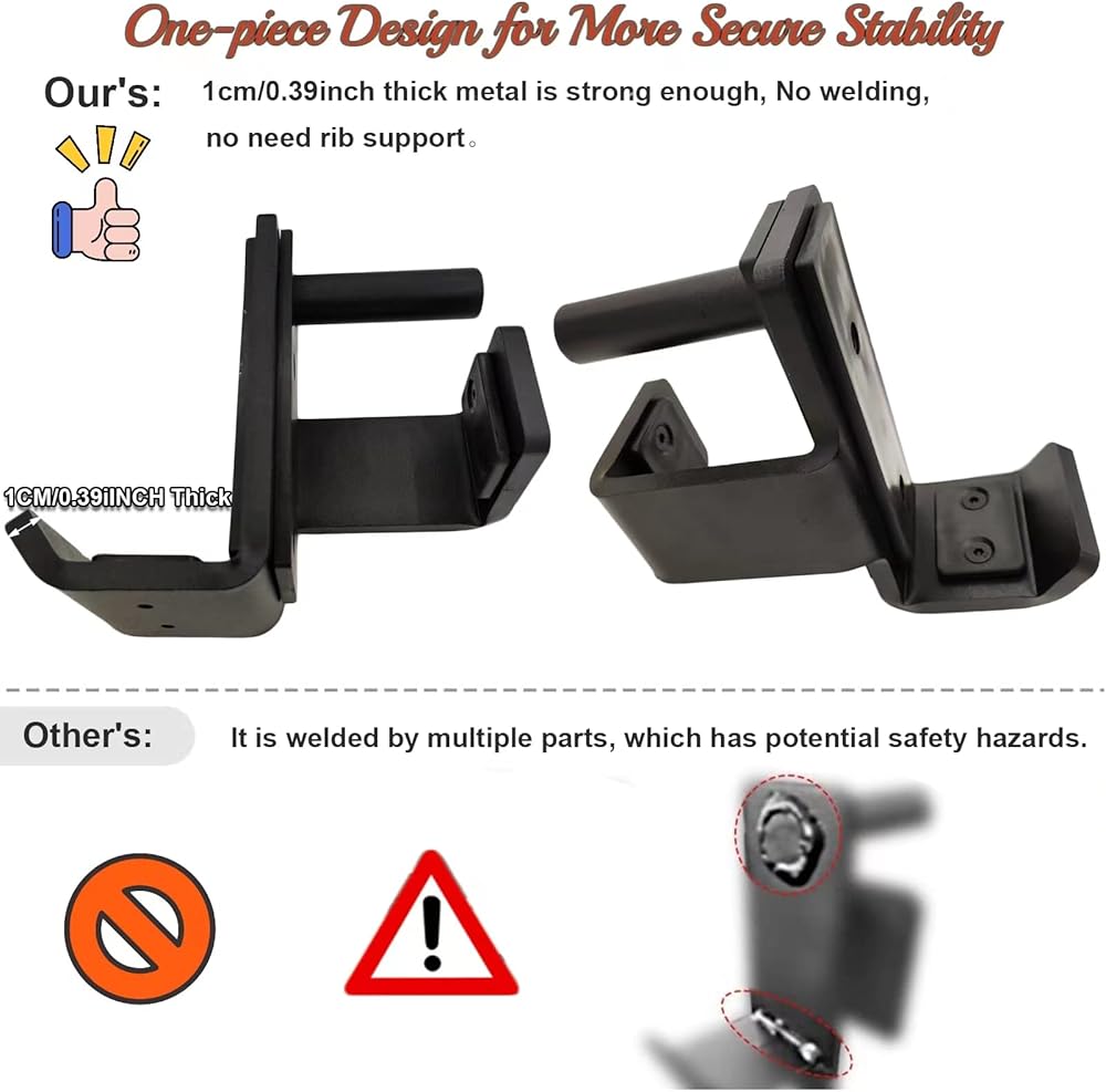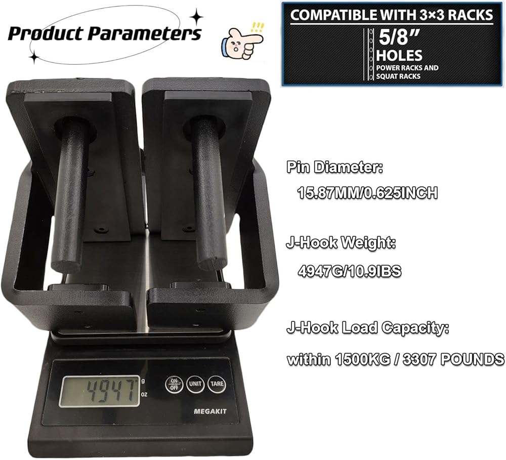 💠 【Easy to Install】- The J-cups is very convenient to use and can make you get a good training effect in your home gym. J-Hook barbell holder is compatible with any power rack of 3"X3" steel 1" and 5/8'' hole. Please check your power rack size before buying.