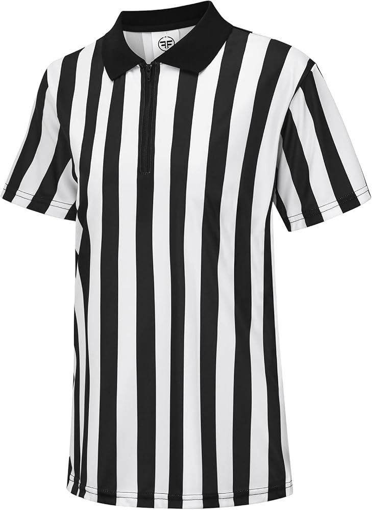TWO COLLAR OPTIONS- There are V-neck and quarter zipper collar, two versions, for you to choose from. V-neck collar lanyard loop for securing the whistle, quarter zipper collar makes the referee costume easy to put on and take off