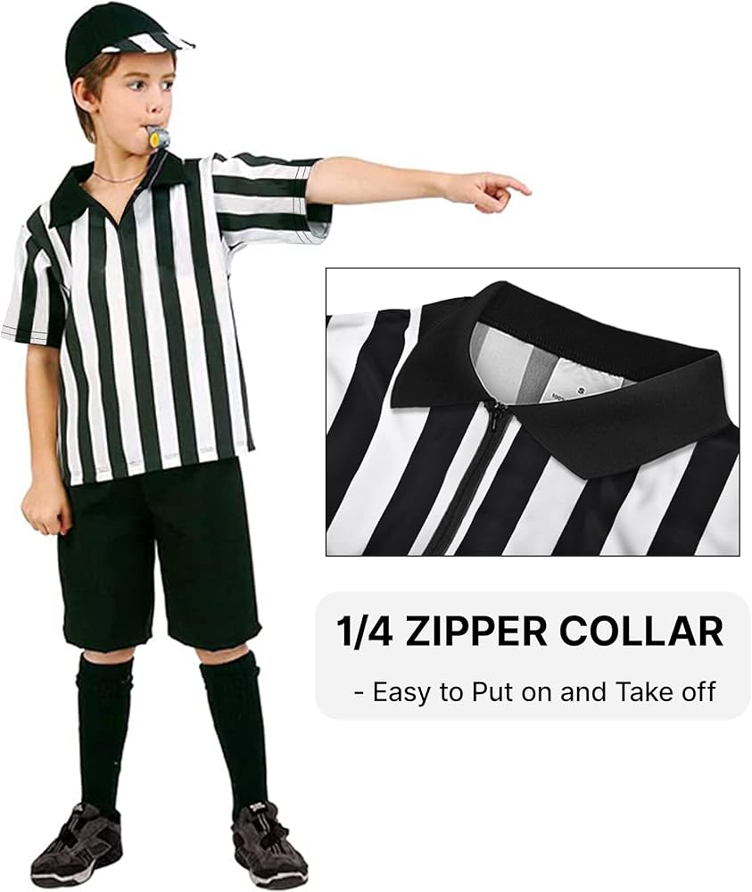 MULTIFUNCTIONAL ACTIVEWEAR- Kids referee jersey is perfect for sports events such as football, basketball, hockey and baseball, also ideal for Halloween referee costumes, restaurant and sports bar wear or school activities