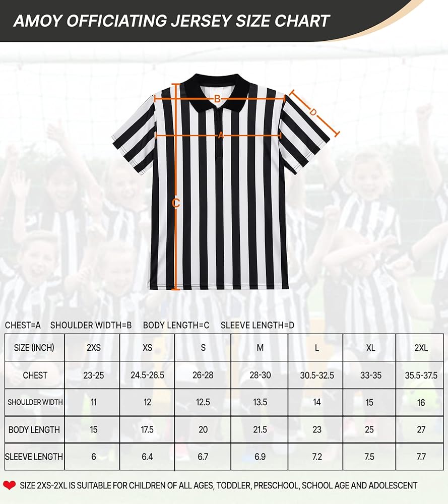 VARIOUS SIZE- The football referee uniforms are available in 7 sizes, from 2XS to 2XL. For boys & girls of all ages, from toddlers to preschool children to teenagers