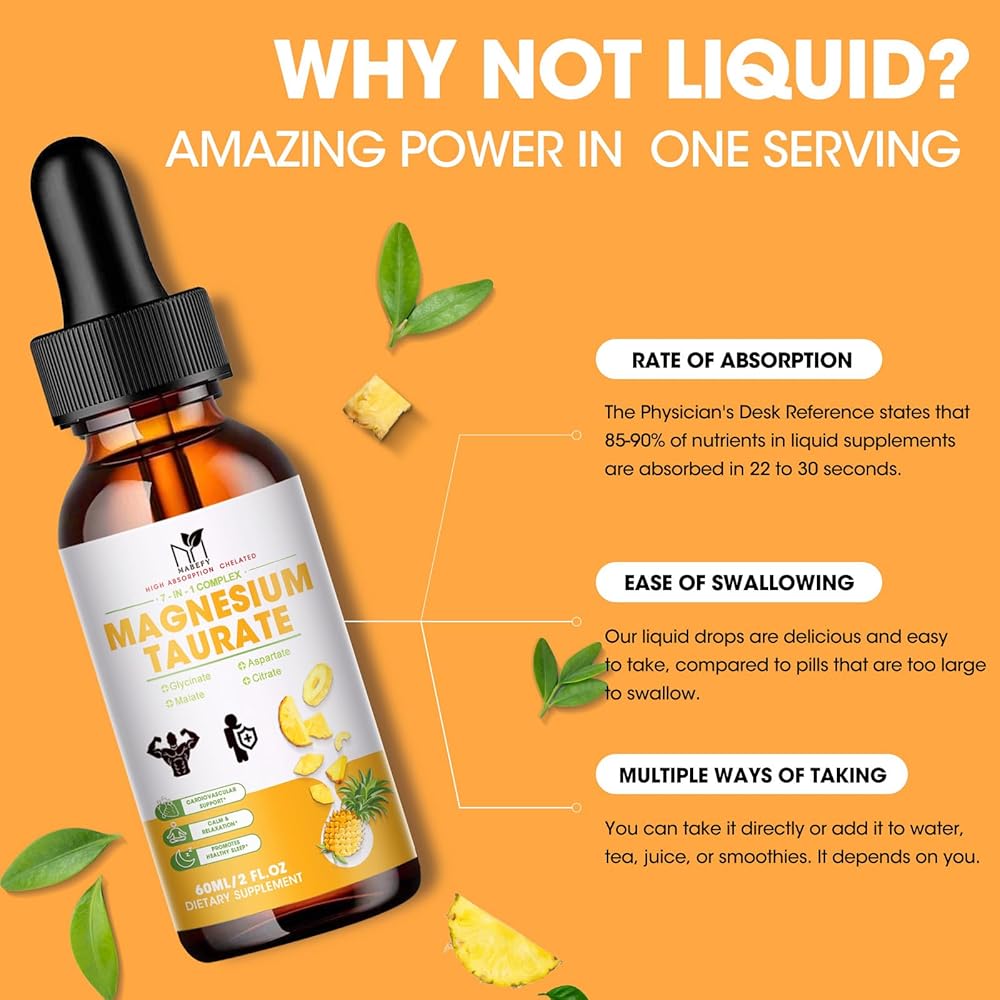 • 【HIGH ABSORPTION LIQUID MAGNESIUM】Magnesium plays vital roles in body functions unless absorbed by the body. That's why our formula includes 5 chelated forms of magnesium, taurate, glycinate, aspartate, malate and citrate which are highly bioavailable and well-tolerated. A great choice for those looking for a gentle and easy-to-absorb option that cares for the digestive system.
