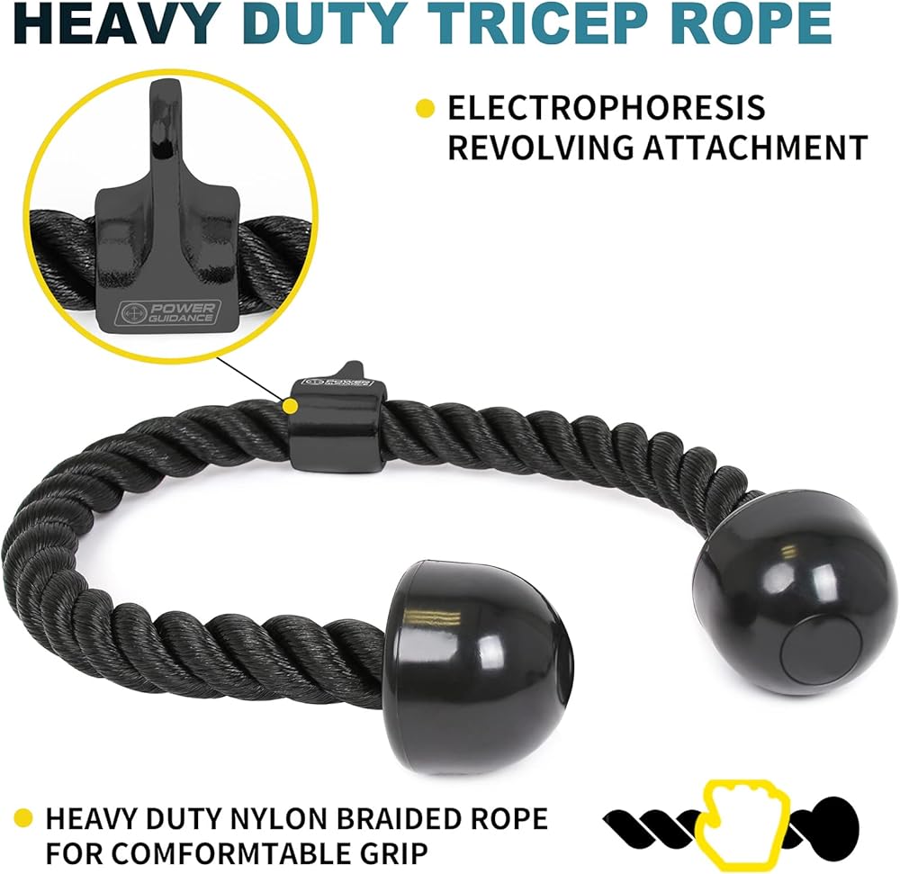 ✅ Nylon Braided Tricep Rope - Made of heavy-duty black nylon braided rope with solid rubber ends, it also features a hard chrome swivel that allows flexible movements for your triceps pull-downs workout.Please note that our biceps rope needs to pull the rope, not the ball head, otherwise the ball head will be pulled all the time and it will easily fall off.