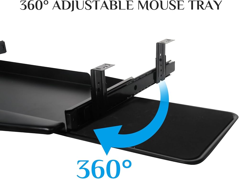 Versatile Design: This keyboard shelf sliding unit accommodates various computer desks with keyboard trays and offers 360-degree mouse platform rotation for "keyboard and mouse tray" flexibility.