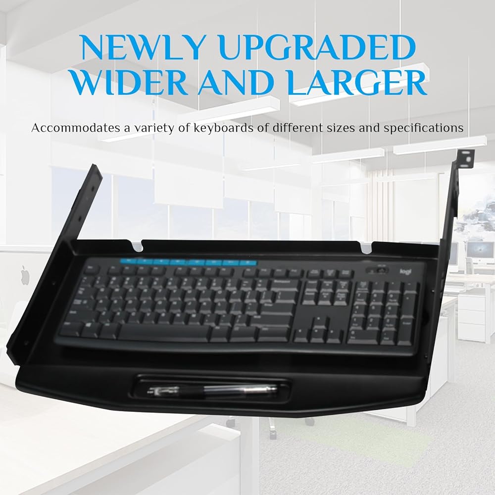 Enhanced Ergonomics: Transform your workspace with this steel sliding keyboard tray under desk, designed for comfort and efficiency, including keywords like "keyboard tray under desk" and "keyboard holder."