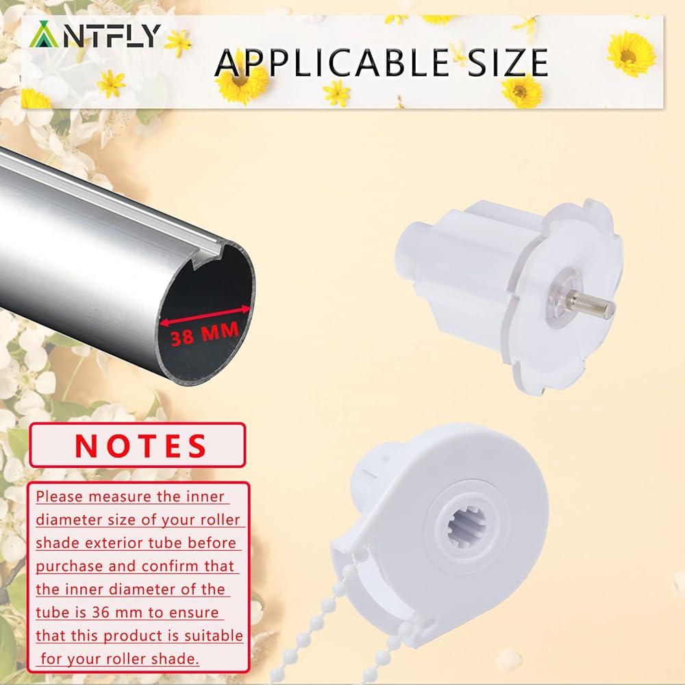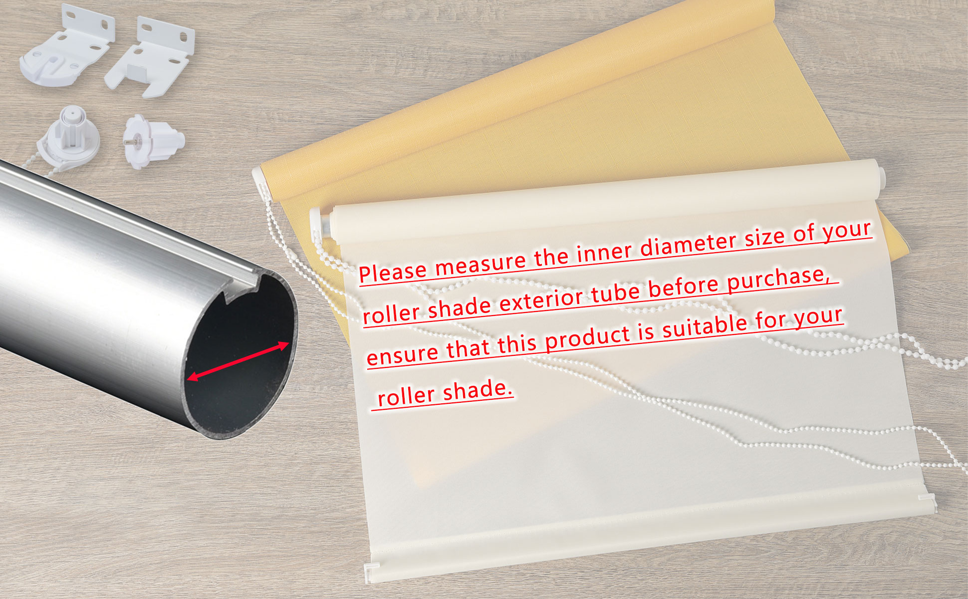 Note: please measure the inner diameter size of your roller shade exterior tube before purchase and confirm that the inner diameter of the tube is 38mm to ensure that this product is suitable for your roller shade. If you have any questions, please feel free to contact us.