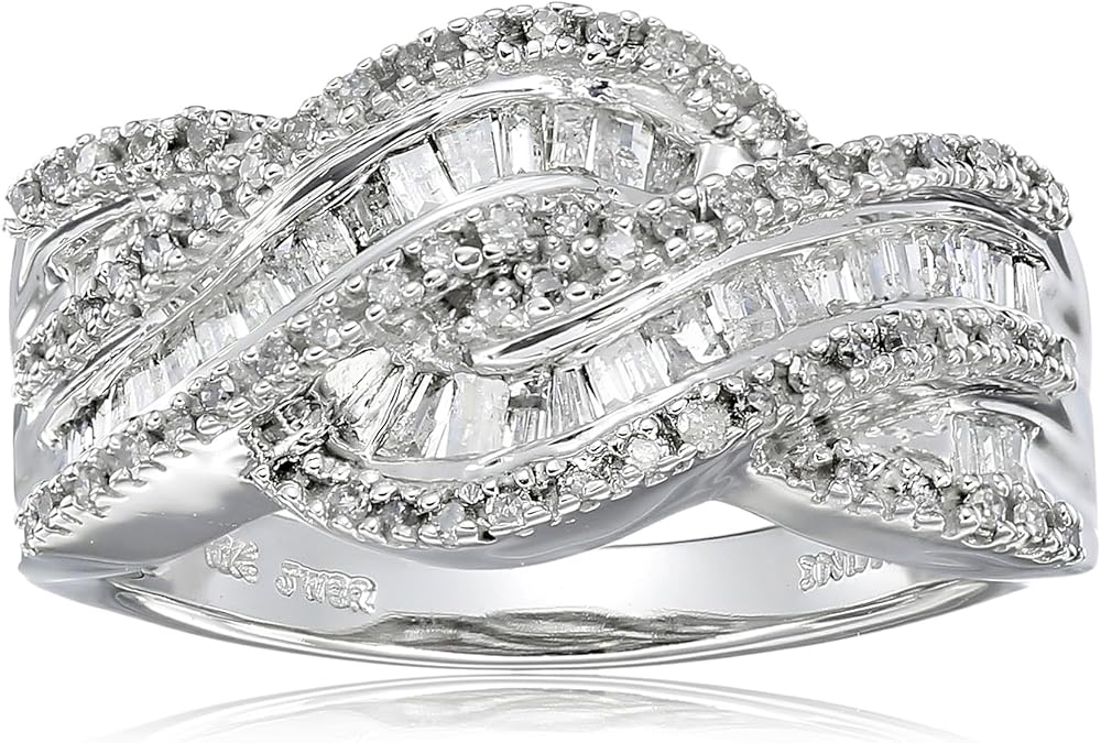Amazon Essentials 10k White Gold and Diamond Twist Ring (1/2 cttw, I-J Color, I3 Clarity)