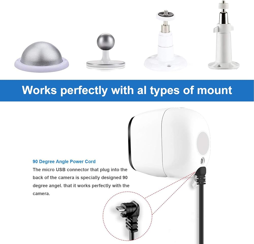 [Intimate Design] connect Arlo's micro-USB head design is a 90 Degree angle plug, the design is to make it closer to the camera, reducing the distance between the camera and Arlo mount, make your camera rotation more convenient and flexible, monitor the picture more.