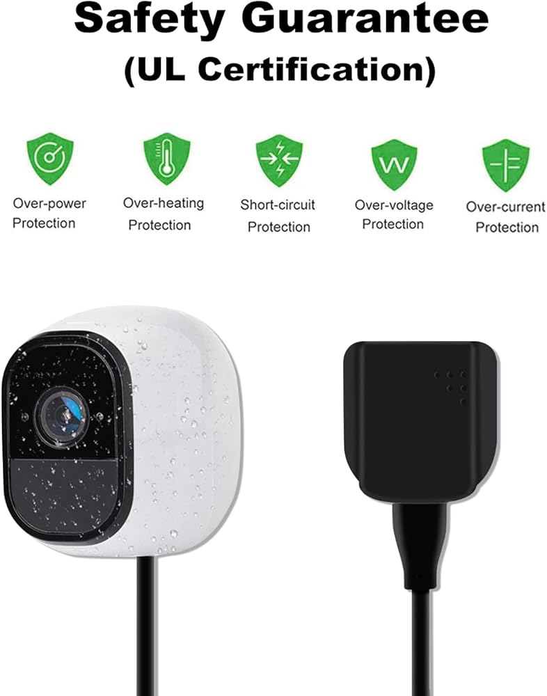 [Long Cable and Strong Power Supply] The quick charge plug connects to a 10ft long cable, long enough for you to keep the camera at home or outside, even if it is far away from the plug. Qc 3.0 quick charge plug, charge faster than the average Charger more than double, for you For a long time fast and smooth power supply.