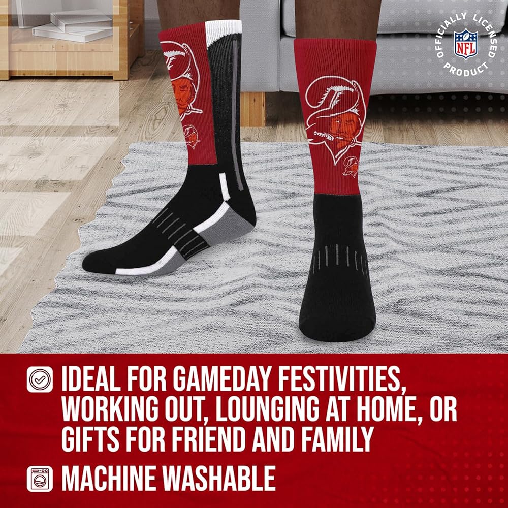 Tampa Bay socks with logo are woven from a poly-spandex blend with a supportive formed heel, socks are comfy and great for wearing with anything from street shoes to your favorite Tampa Bay Buccaneers slippers