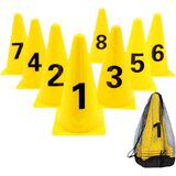Digital printing: These agility cones are printed with clear numbers, which can improve training efficiency and easy to use. 9" height x 5.5" diameter, set of 8, easy to take with.