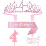 3rd Birthday Decorations for Girl, Including 3rd Birthday Crown/Tiara, Sash, Happy Birthday Cake Toppers and Number 3 Candles, Pink Birthday Party Supplies 3 Year Old Girl Birthday Gift Ideas