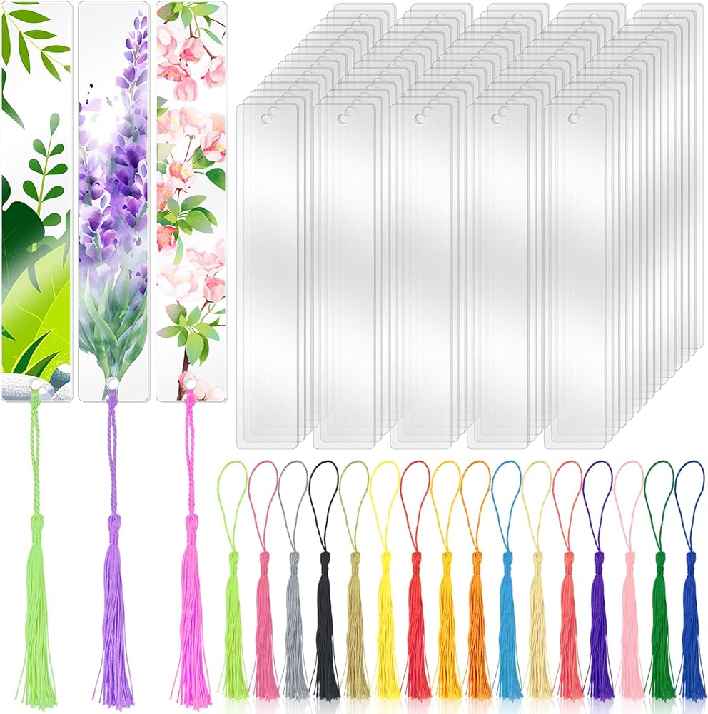 Acrylic Bookmarks Bulk: You will get 100 pack blank acrylic bookmarks and 100 pieces colorful tassels, 100 different styles of transparent personalized bookmarks can be made.