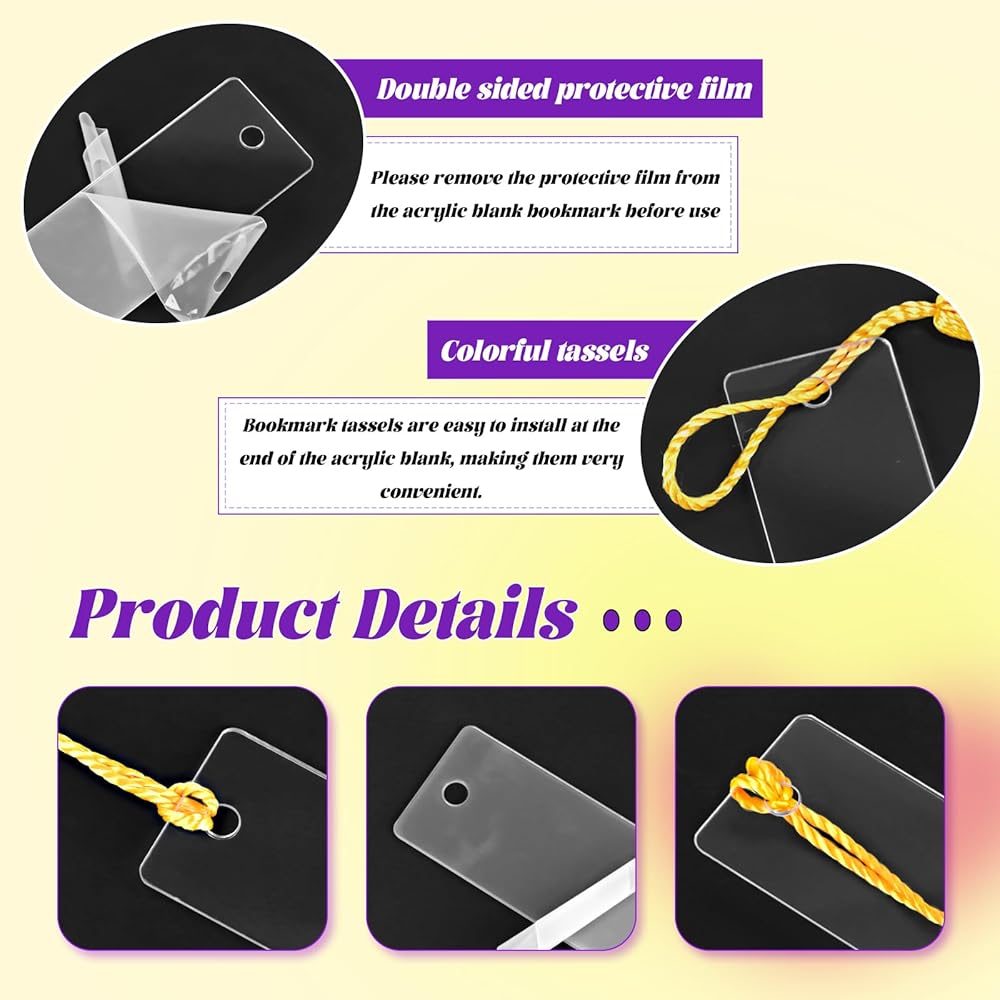Easy To Use: Please tear off the protective film of the acrylic blank bookmark before use, the bookmark tassel is easy to install on the end of the blank acrylic, which is very convenient.