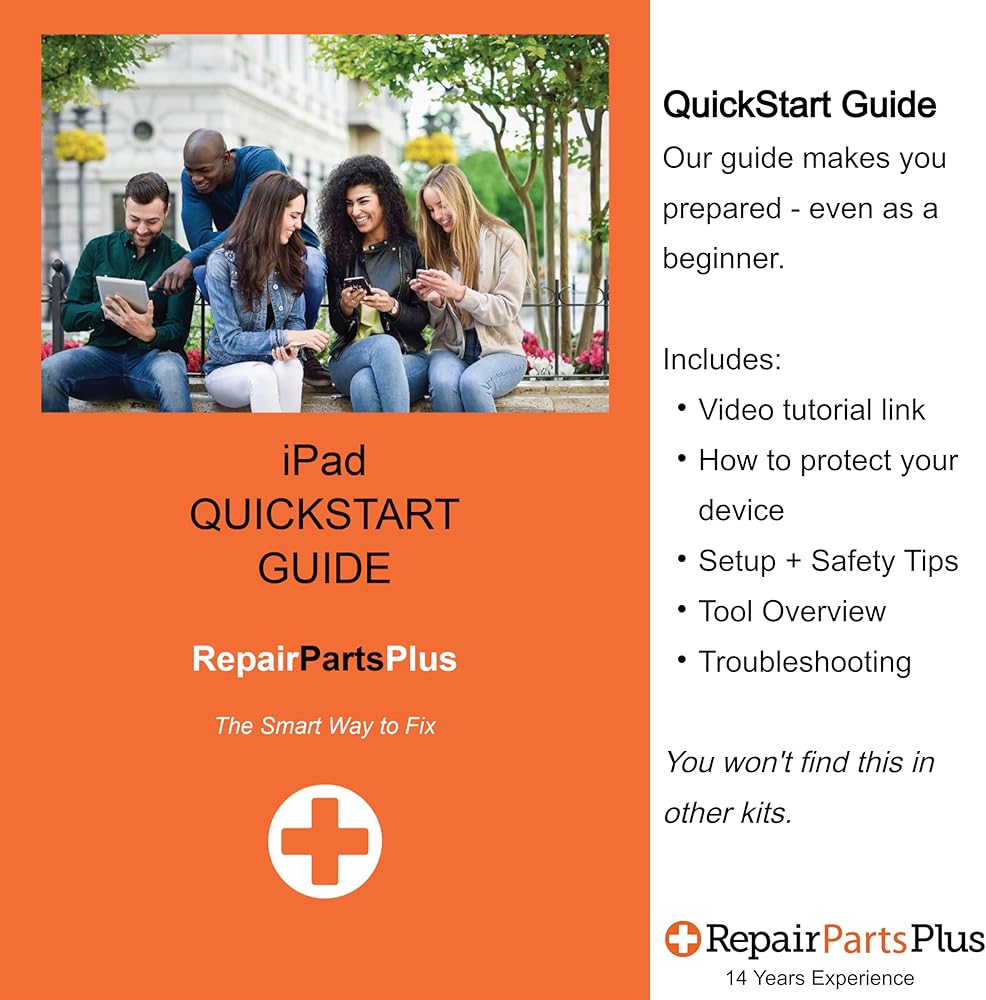 [EASIER / SAFER] Make the repair easier and safer with better tools & adhesive. The premium tools are durable and won't break unlike cheap plastic tools. We also include a written Quick Start guide and link to helpful video instructions.