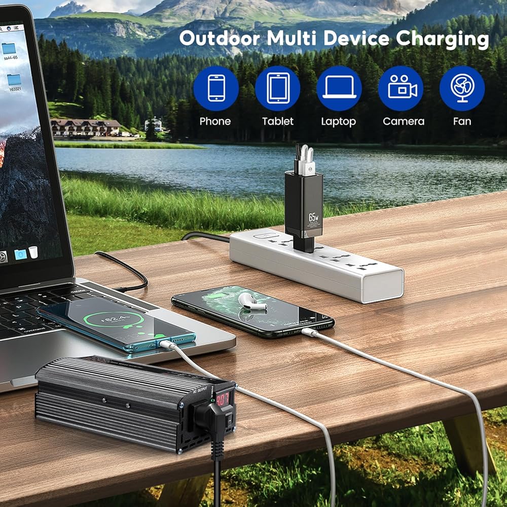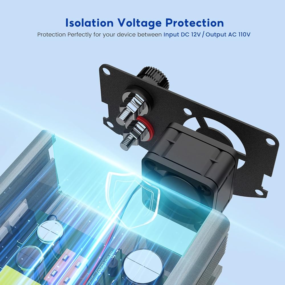 【Multi-Protection】Power inverters for vehicles built-in fuse to protect your device. Stable charging design provides protection, including under voltage protection, over voltage protection, overload protection, over temperature protection, reverse connection protection, and short circuit protection.