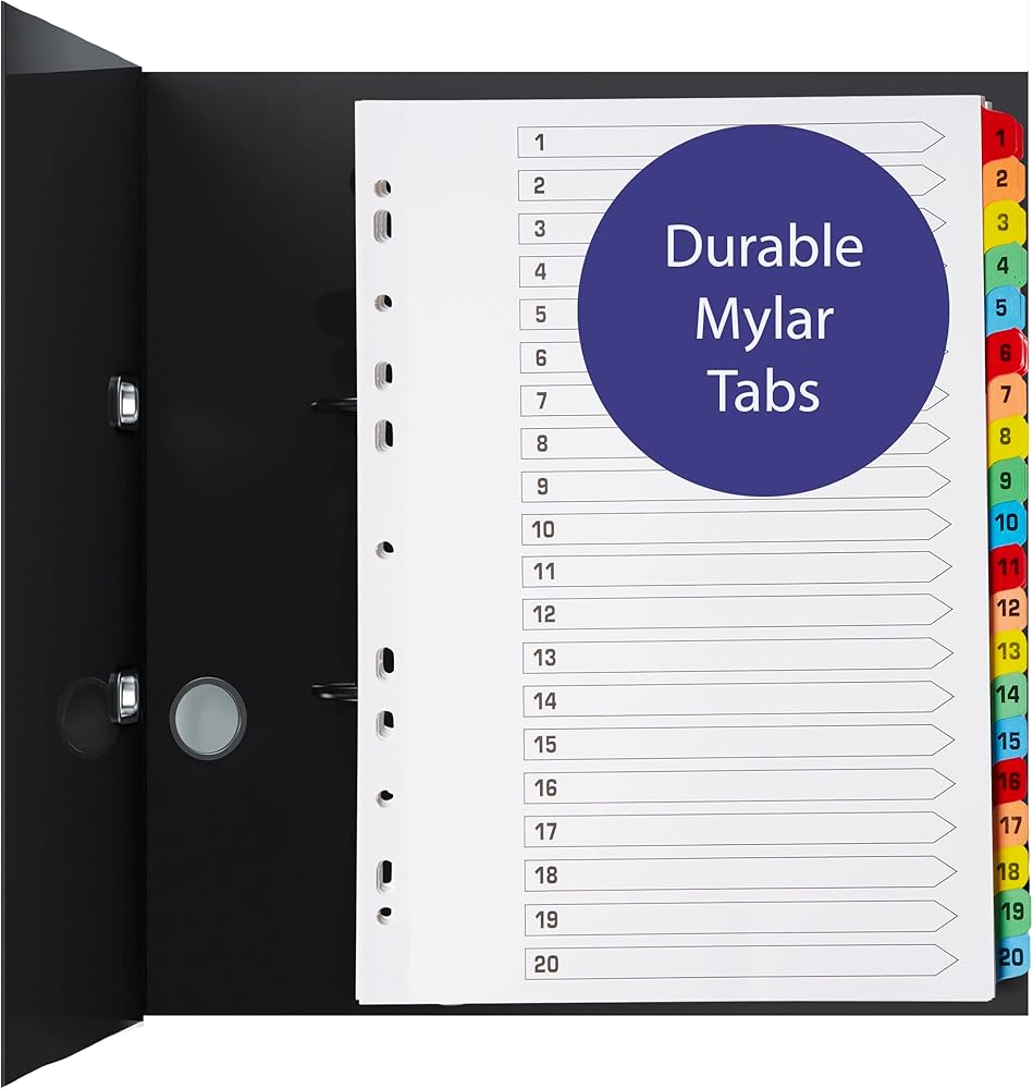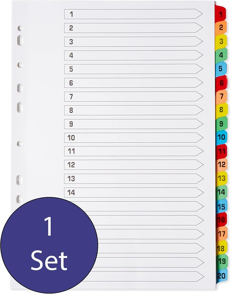Clear Numbering System: Each tab is prominently numbered from 1 to 20, enabling quick referencing and efficient navigation through different sections of your binder.