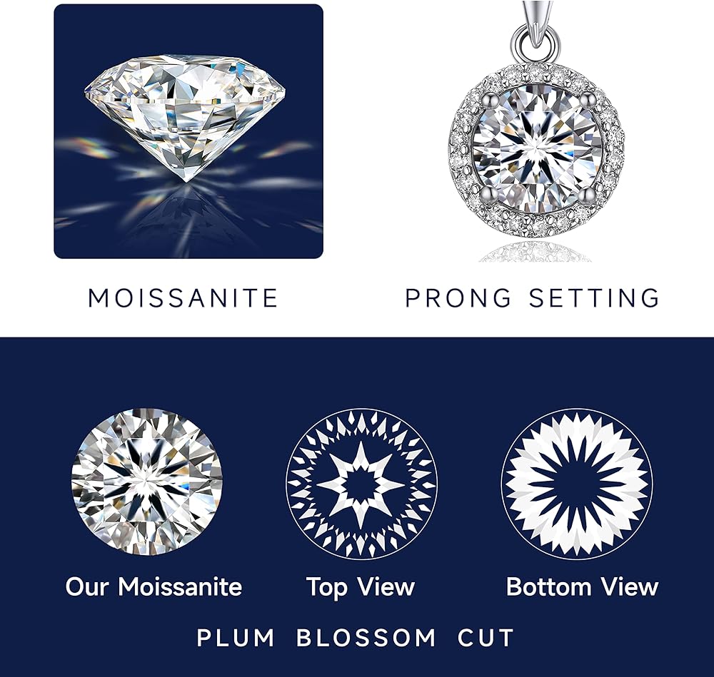 💎【Excellent Craft】➣ This moissanite pendant necklaces are adopted upgraded plum blossom cut and excellent polished craft, more sparkling and clean. Each stone has been carefully selected, all of which are D color VVS1 clarity. And our moissanite has passed the GRA moissanite certificate, which is traceable and with a unique code.