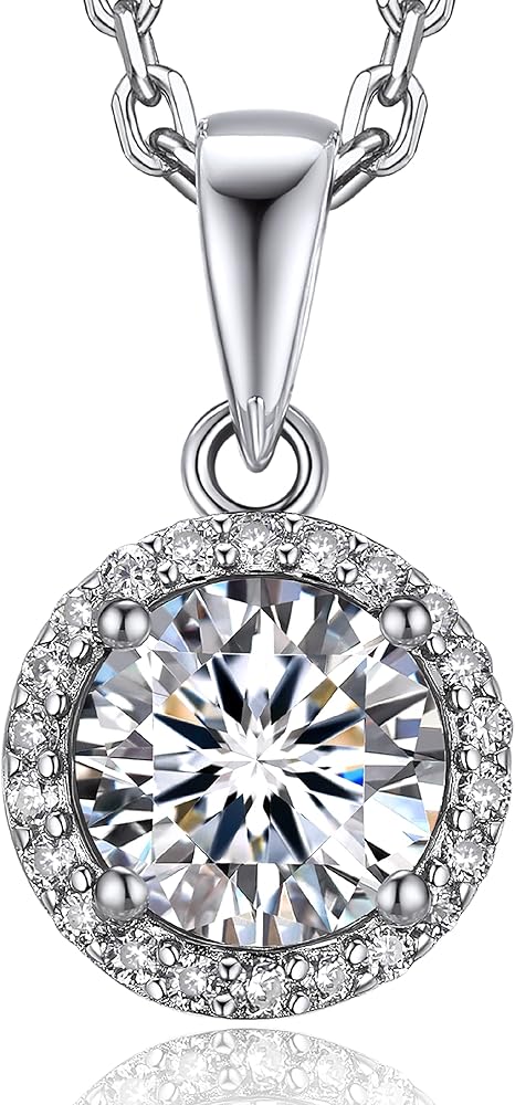 MomentWish Moissanite Necklace for Women, Anniversary Wedding Birthday Gifts for Women, 1Carat Simulated Diamond Pendant White Gold Plated with 925 Sterling Silver Necklace