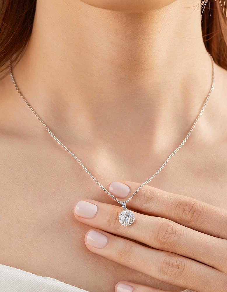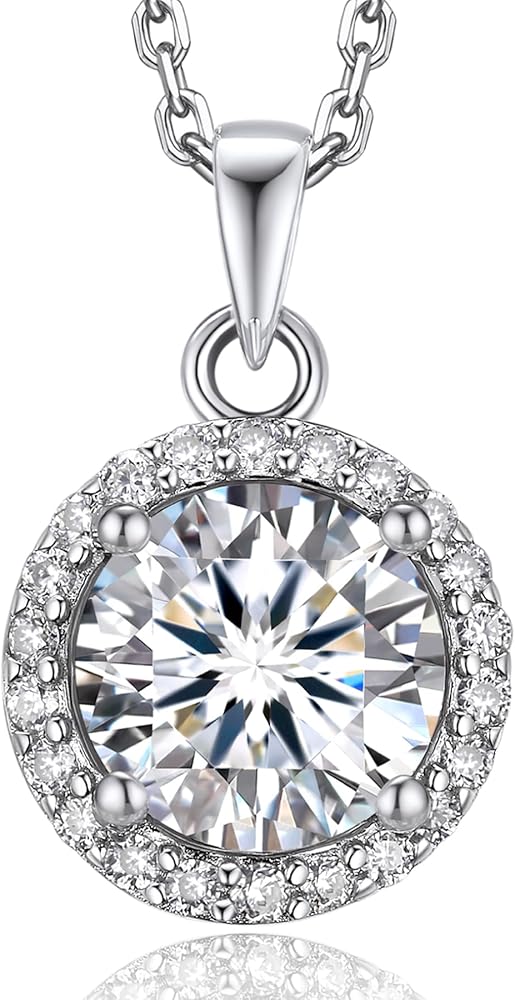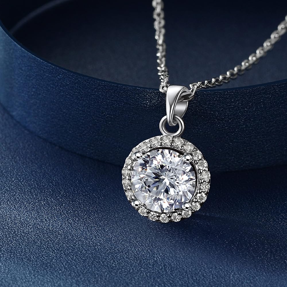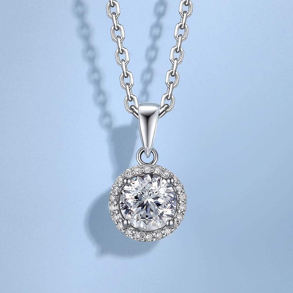 💎【Gorgeous Design】➣ With a halo of micro-pave set 22 moissanite that revolving around the centre stone 1ct 4 prong setting. Moissanite pendant necklace creates sparkly brilliance. This moissanite necklace will catch eyes for you! Also, the round halo pendent necklace can go well with a variety of outfits and styles.