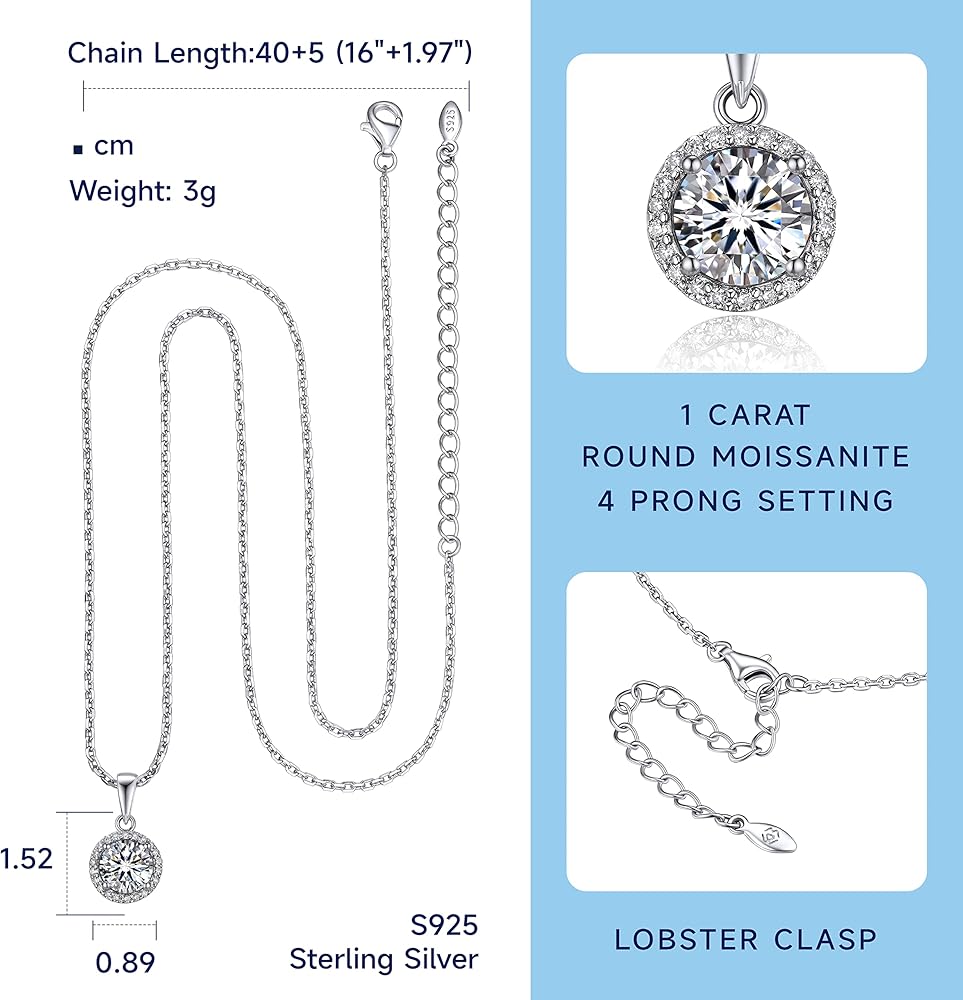 💎【Comfortable Wearing】➣ The moissanite pendant necklace is crafted with precious S925 sterling silver, lead and nickel free, hypoallergenic, will not make your skin green, red or inchy. Safe for sensitive skin. The silver chain is sturdy, and can be adjusted from 16 inches to 18 inches. The spring clasp is easy to wearing.