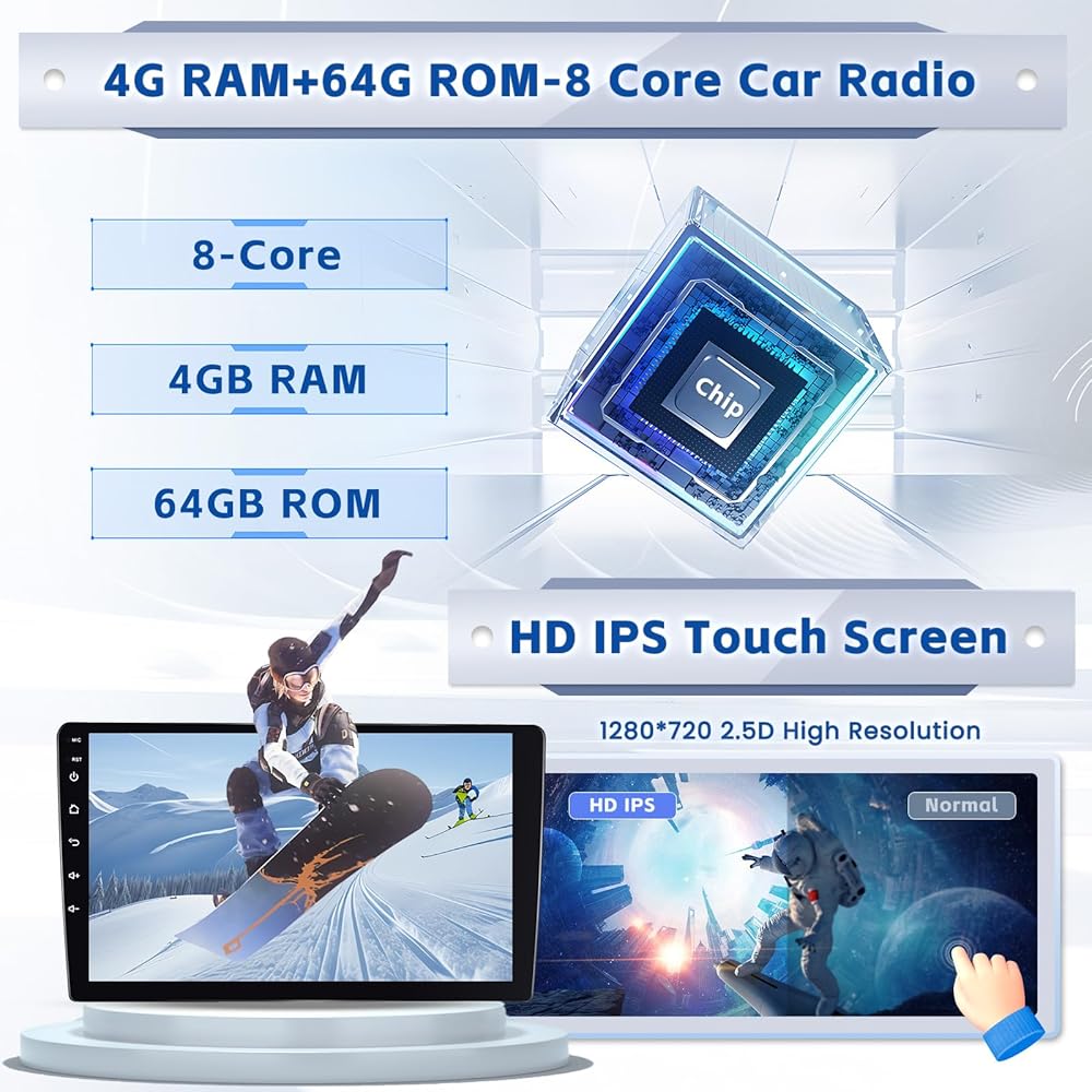 【Upgrade 8 Cores 4+64G Android 13 Car Stereo】10.1 inch HD touch screen radio for Jeep Compass & Patriot 2010-2016, with 1280 x 720 screen resolution, support 1920*1080P video playback. Android 13 system, lightning-fast 8-core processor and massive 64GB storage, providing the latest and most advanced operating system.