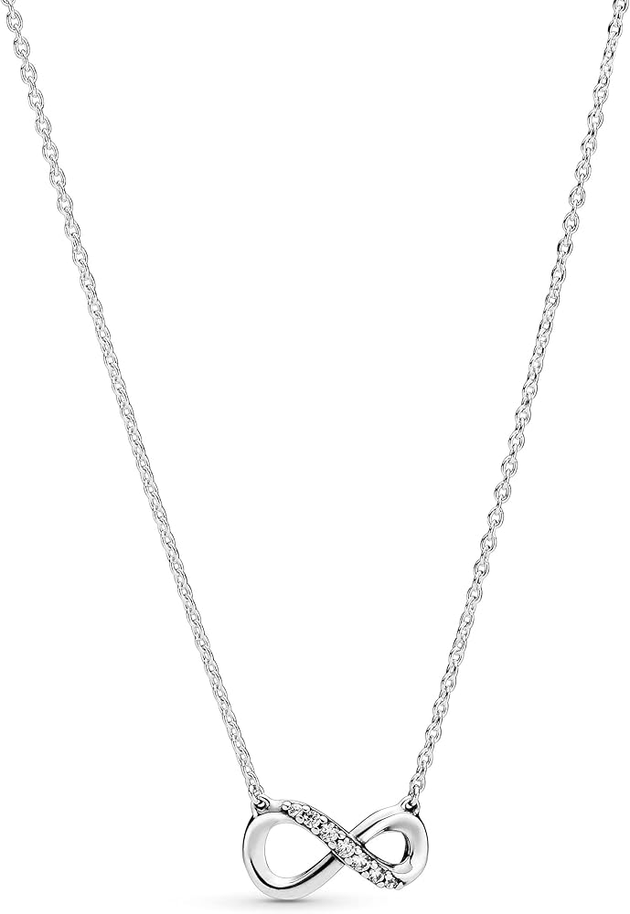 The delicate infinity collier necklace symbolizes love that lasts for all eternity. It features clear cubic zirconia for added sparkle. Inspired by the eternal bond between a mother and a child, the infinity symbol lends gravitas to your emotions and helps you express exactly how you feel with a universally recognized sign for a deep connection. Style with other infinity-inspired pieces or gift the eternity necklace to someone you love to infinity and beyond.