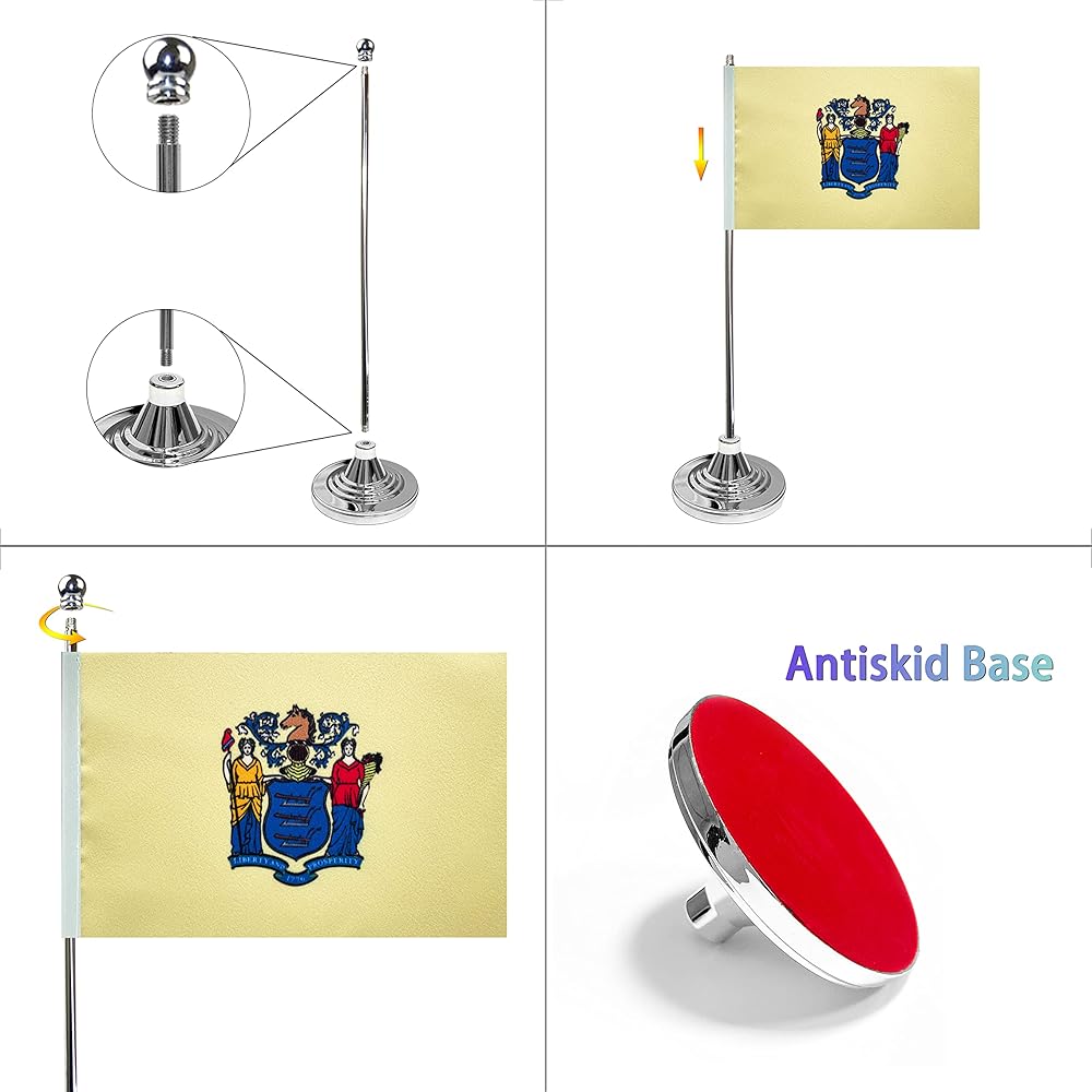 Material: Flag surface is made of durable polyester, silver metal stick, suede non-slip stand base