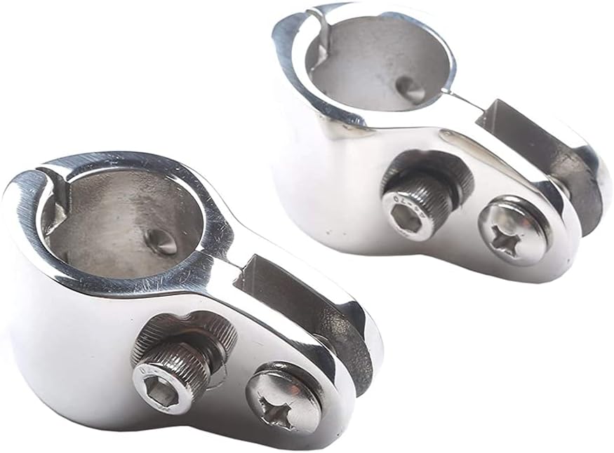EASY to ASSEMBLE - Hinged Jaw Slide Marine Bimini Top Hardware ,The jaw slide has 2 screws to secure it to the rail.Installs easily without needing to disassemble your railing.Stainless steel hinged jaw slide fitting is ideal for mounting on handrails, or in applications where it is not possible to slide the fitting on. Available to fit 7/8 inch outer diameter tubing.