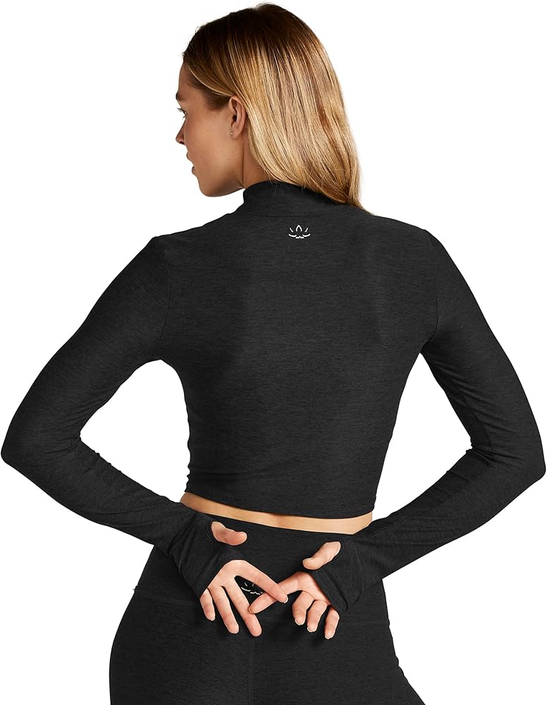 CROPPED SILHOUETTE: Flaunt a trendy and athletic aesthetic with the cropped silhouette of this Beyond Yoga fitted pullover for women. The carefully crafted length strikes the perfect balance between style and functionality, allowing you to showcase your favorite high-waisted leggings or shorts. Whether you're at the yoga studio or running errands, the cropped design adds a contemporary edge to your activewear collection.