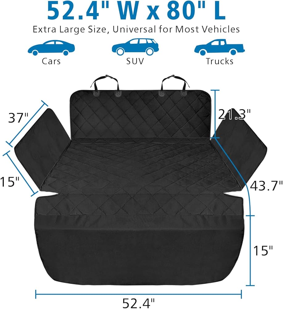 Widened Non-slip Backing - The non-slip backing of the pet cargo liner for SUV measures 53.2 x 51.2 inches, TWICE larger as the average size, provides double stability for your pets even in sharp turns or emergency braking