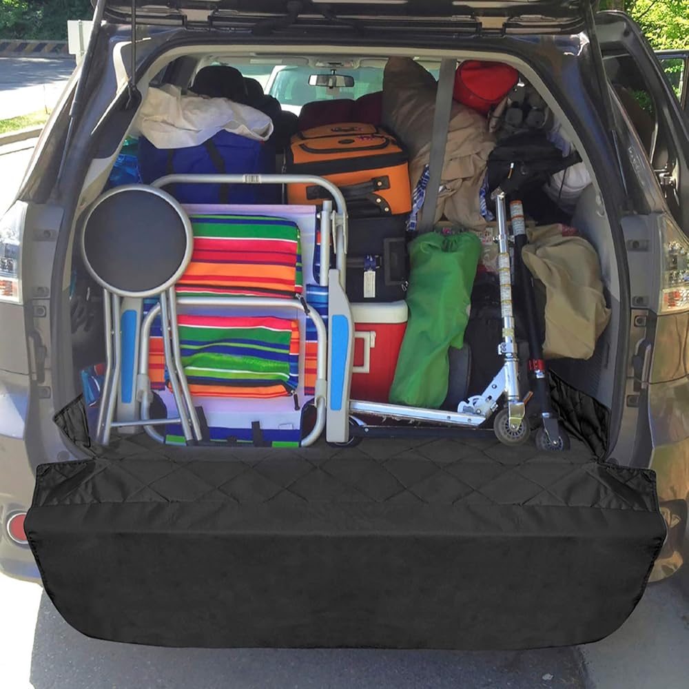Muti-layer Water resistant - The trunk cover is made of heavy duty 4 LAYERS water-resistant coated oxford fabric, protects the cargo area from pet dander, hair, mud and water; Quilted padded cotton is comfortable for your pet to ride