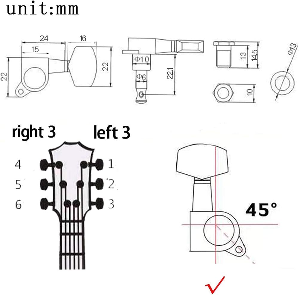﹣6 x Tuner Machine Head(3 for Left + 3 for Right).