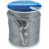 【Damage-Resistant Fiber】Premium material of boat anchor rope 3/8inx50ft ensure resistance to seawater corrosion,UV rays and weather resistance.High strength anchor line 3/8 50ft is the ideal combination of reduced stretch and increased shock absorption.Each solid braided anchor rope has a breaking strength of 1500lbs and a maximum recommended working load of 450lbs.This boat lines have load limits and are suitable for boats up to 18 ft. Please choose the right anchor rope to match your boat.