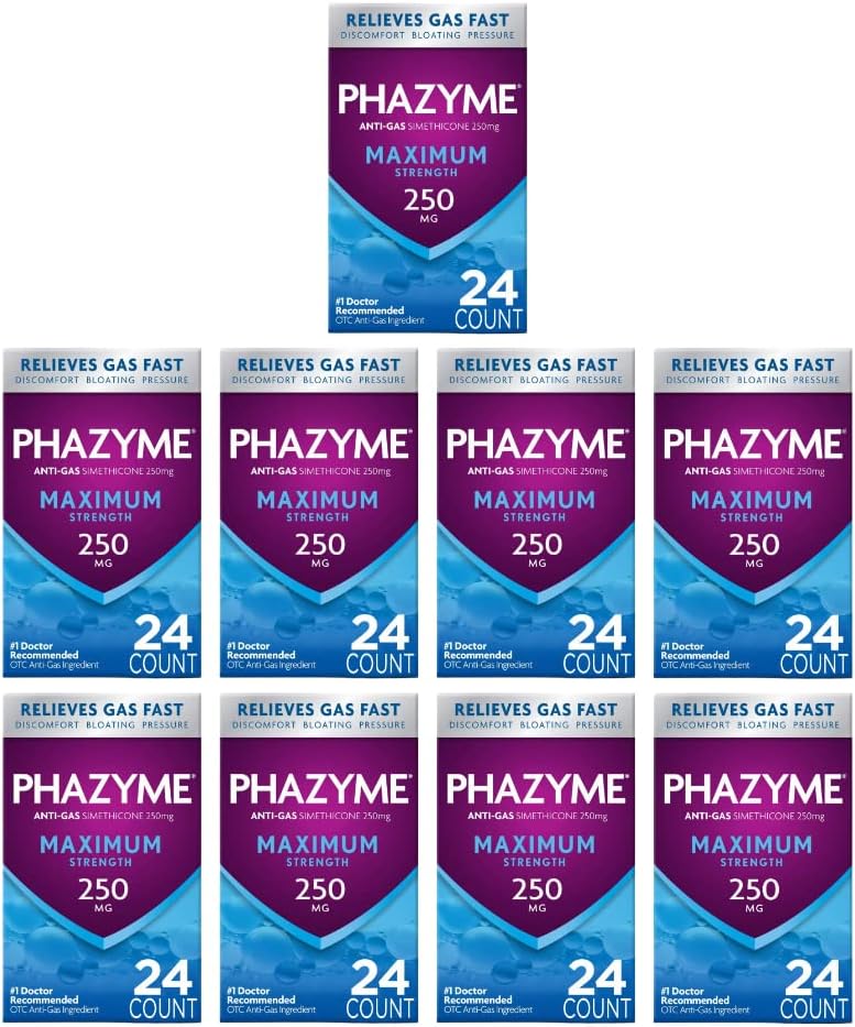- Contains 5 boxes of Phazyme Maximum Strength Gas Relief, 24 Fast Gels