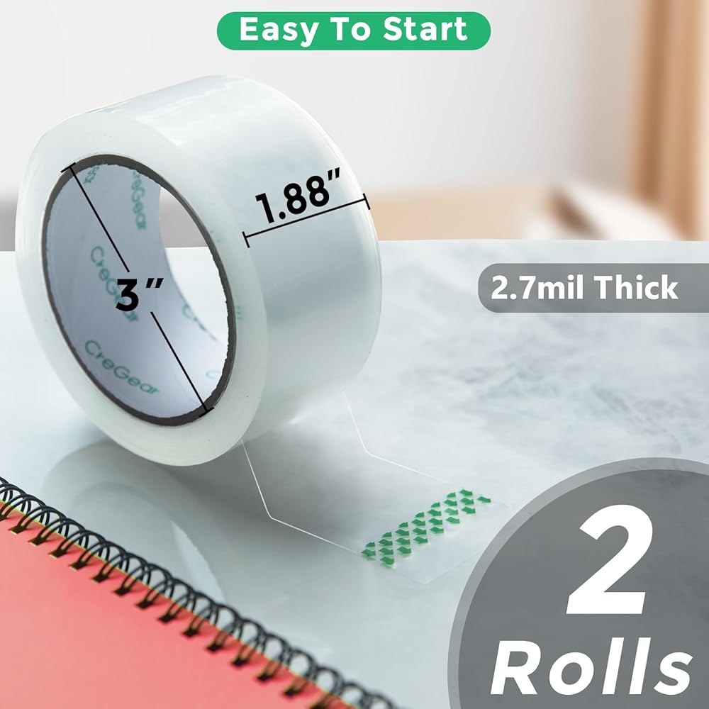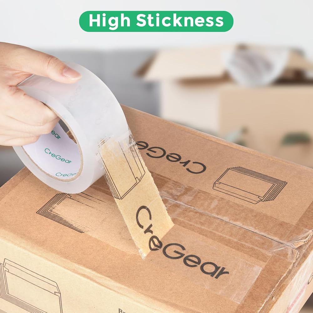 Strong Stickness Adhesive: CreGear bulk Packing Tape Rolls have good performance in instant adhesion, thoughness and flexibility to ensure a long lasting hold, can withstand over 40lb weight, will not tear or split easily. Strong Sealed and well sticked on all boxes.