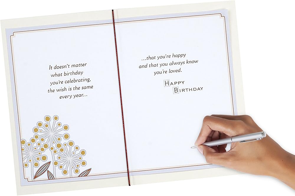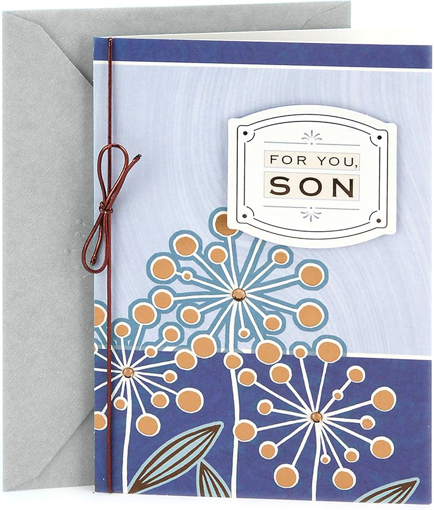 Send warm wishes to your son for his birthday with a birthday card featuring a flower graphic embellished with gems, and a brown metallic cord. Card measures 5" x 7.2" and an envelope is included. The Hallmark brand is widely recognized as the very best for greeting cards, gift wrap, and more. For more than 100 years, Hallmark has been helping its customers make everyday moments more beautiful and celebrations more joyful.