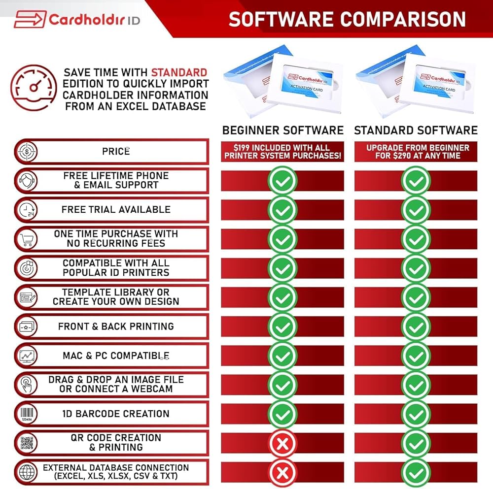 Easy to Use - This ID printer comes with Cardholdir ID badge creation software. Choose a template and go without the need for expensive graphic designers. Manual feeding, 120-150 full color cards/hour. Compatible with PC & Mac.