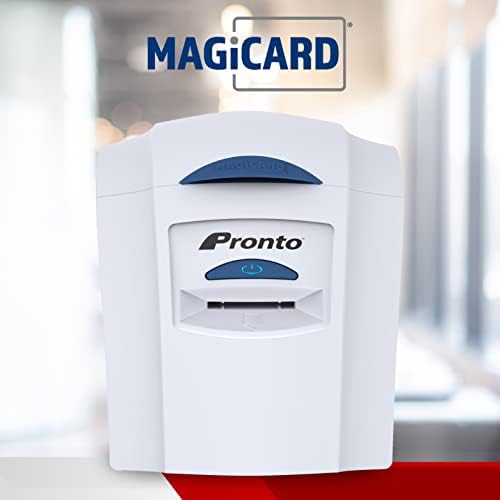 Everything Included - Magicard Pronto is the ideal ID badge maker for lower volume projects. Make single sided id badges: The Magicard Pronto badge machine, Cardholdir ID Beginner Software, HD Webcam, 100 print full color ribbon, 100 PVC cards, 100 strap clips, and slot punch to print and wear 100 standard CR80 sized (driver license sized) ID badges.